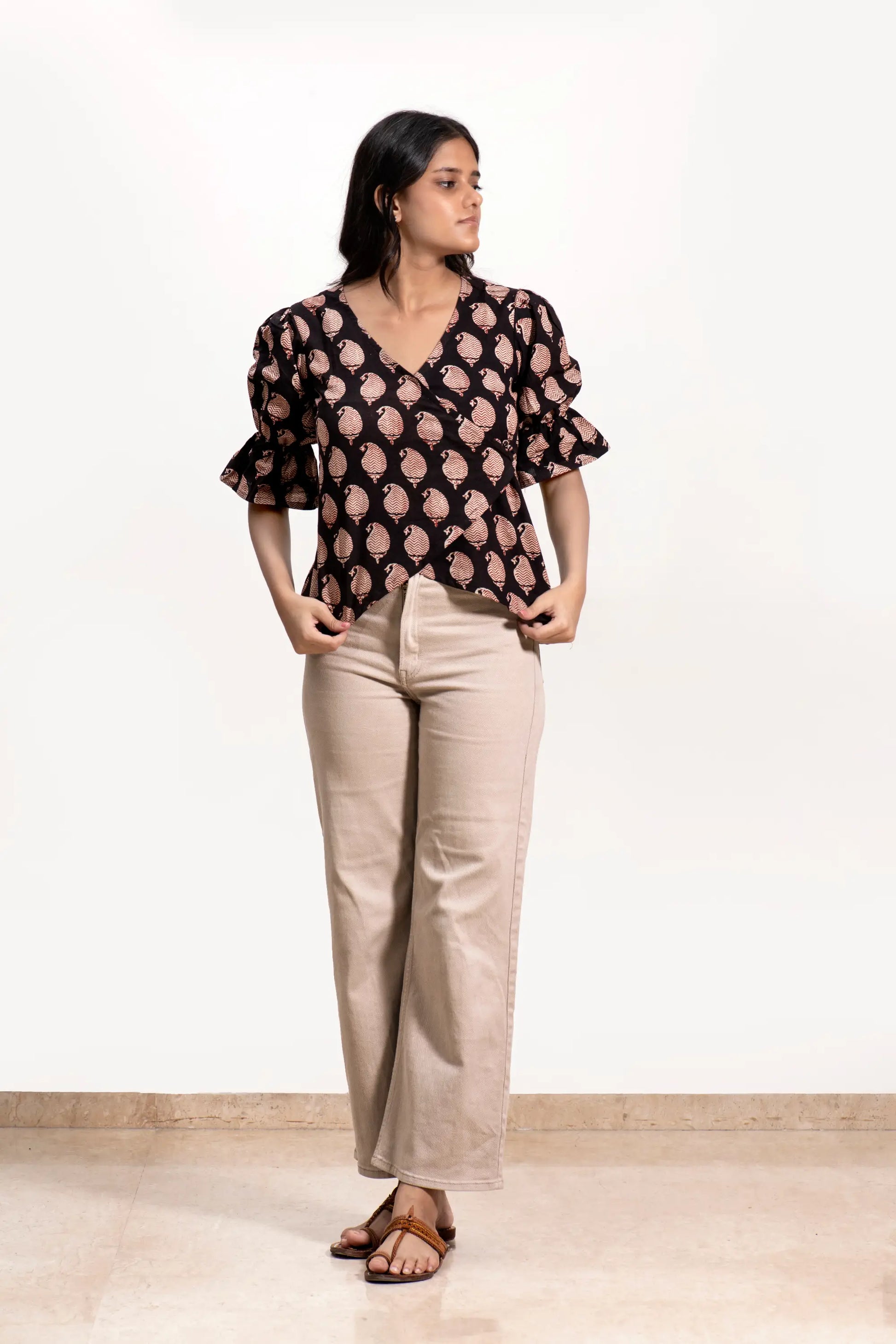 Elevate your everyday look with Iraahi’s uniquely designed wrap top, featuring stylish puffed sleeves and elasticated openings for a chic, feminine touch. The wrap silhouette flatters all body types, making it both trendy and versatile. Pair it with high-waist denims for a casual outing, or style it with a sleek skirt and heels for an effortlessly elegant evening look.