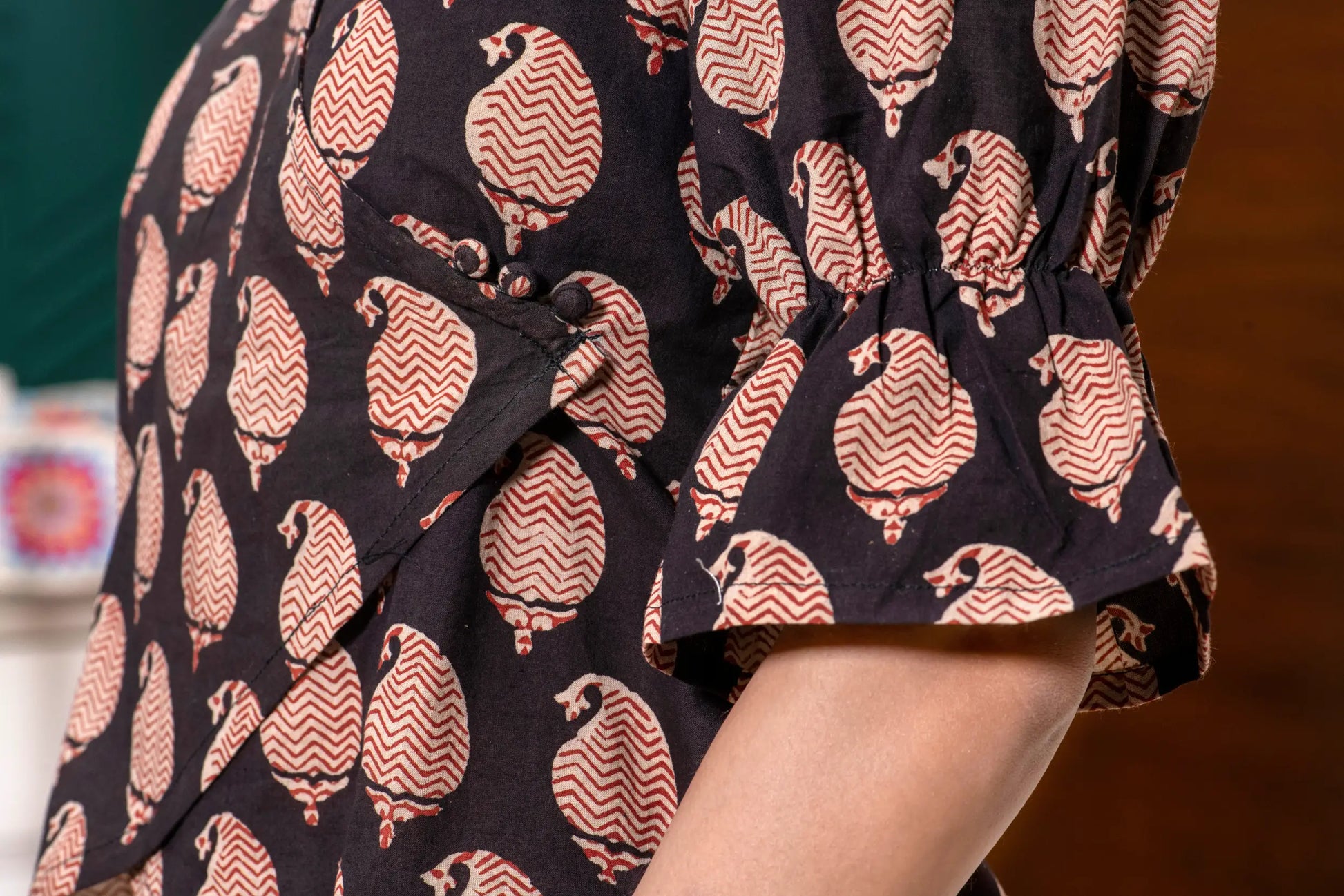 Bagru hand block printing is a centuries-old craft from the town of Bagru near Jaipur, Rajasthan. Known for its bold motifs and natural color palette, Bagru printing uses traditional wooden blocks and eco-friendly dyes derived from natural sources like indigo, pomegranate, and turmeric. The process involves multiple steps of washing, dyeing, and hand stamping, all carried out with remarkable precision by skilled artisans. Each fabric embodies the rustic charm and rich heritage of Rajasthani craftsmanship.